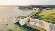 We’ve driven over to hole five, by Neptune’s Tower, a folly that was built by controversial 18th century politician Lord Holland, owner of the imposing Kingsgate Castle on the other side of the bay. It’s a beautiful spot with immaculate pastures, sitting on top of a perilous white cliff. I always thought golf was a sport invented by men who wanted an excuse to be away from their wives for three hours, but from here I can see the virtue of a pleasant walk punctuated by moments of genteel violence. No hanging around though, there are ladies cresting the horizon. Turns out women appreciate the respite too. We wave bye to Alan and the clubs go back into lost property.