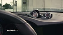 Apparently, the base 911 T 2.4 Targa was originally in ‘poor condition’ and missing some parts. No problem, says Porsche, because the plan was to completely upgrade the engine and chassis to a 911 ‘S’ 2.4 Targa anyway. It now gets 187bhp and mechanical fuel injection, and is finished in the same colour scheme as the new car (both reflecting the ‘Chronograph I’ watch that F.A. Porsche designed in ’72).