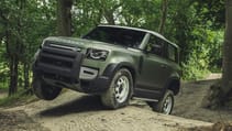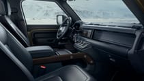 Though 90s and Commercials will have coil springs as their base spec, all 110s have variable-height self-levelling air suspension as standard. It’ll do the usual stuff: kneel to load or hitch a trailer, drop a bit for high-speed running, raise for bumpy stuff, raise more for wading or getting itself off a hump. Nothing new, but this is the sort of vehicle that makes best use of the idea. You can bring your off-roading skills: control the degree of diff locking, engagement of the low-box, the degree of slip. Or you can let intelligent automatic terrain response take care of it all. You’ll know what’s happening because the centre display tells you, and the optional HUD can show chassis angles. Land Rover’s ‘transparent bonnet’ camera adds to your knowledge.