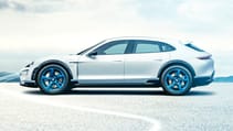 Finally there's this Cross business. That's the slightly raised ride height, the chunky tyres and the body armour around the arches. Here the messaging really does start to get a bit convoluted. Quite apart from its connected boot-mounted drone (we'll come to that), does the beautiful and pure idea of the Mission E really need to be turned into, what, a Mission E Allroad? A Mission E Scout? Or – for those of you with long sad memories of MG Rover's death-throes desperation – a Mission E Streetwise?