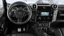 Brakes too, are beefier, via AP Racing 362mm front discs (with six pot calipers), hiding under 18in wheels. Ares has constructed the arch extensions, bonnet, headlight surrounds and grille from carbon fibre to save weight. There are new heavy duty front and rear bumpers, underside protection, reinforced tow points, side steps and steel roof bars, along with LED headlights.