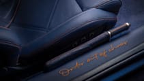 Callum has also worked with leather specialist Bridge of Weir to develop a new signature tartan, and dumping the original’s +2 seating emphasises the Vanquish’s GT remit. To which end, Mulberry has created bespoke luggage for the 25. Rising British watch stars Bremont have designed the instrument cluster, and a detachable mechanical pocket watch that sits on top of the centre console.