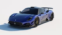 The pronounced front lip and side skirts bring the 621bhp MC20 closer to the ground and that massive rear wing curves with the rear of the car. It looks great in silver with the blue carbon too. Or is that just us?