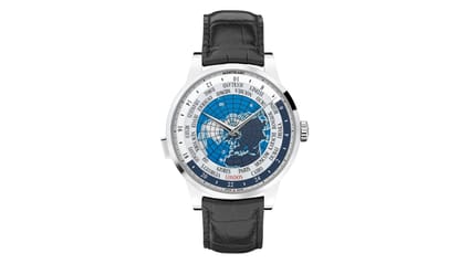 Unlike the IWC, this takes the decorative route with its beautiful planisphere – still functional, thanks to a rotating semicircle of tinted crystal that indicates where night is falling.